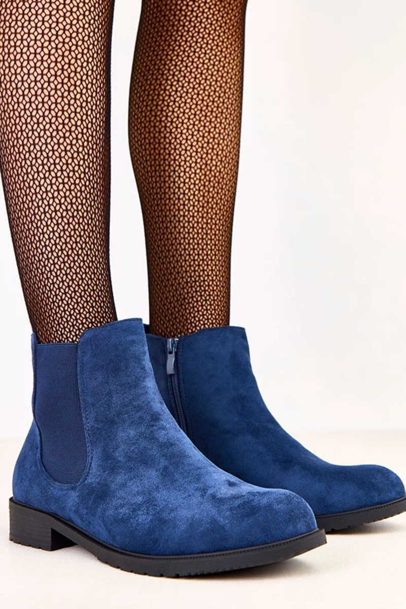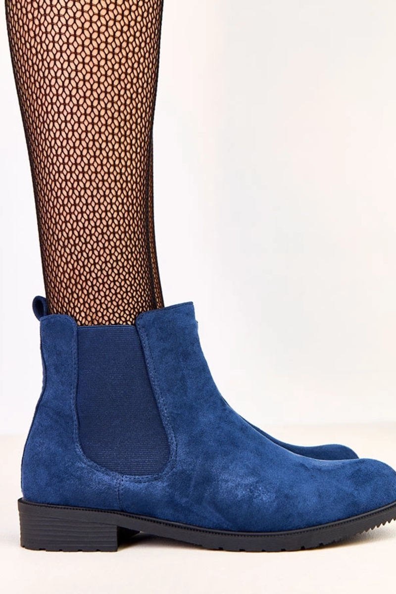 Dunkelblaue flache Stiefeletten mit elastischem Einsatz Salomi