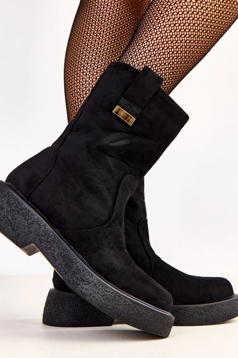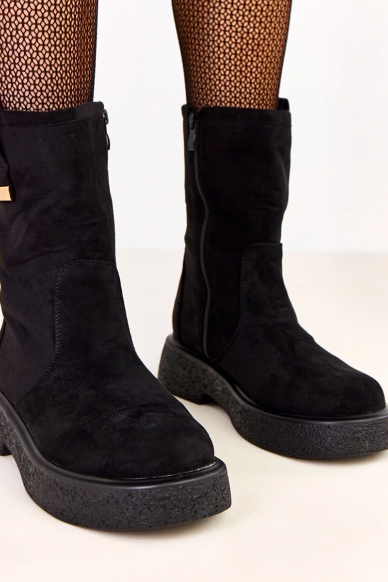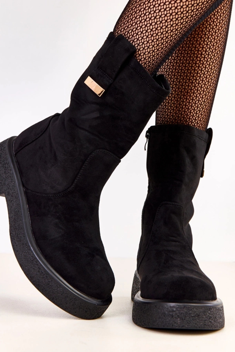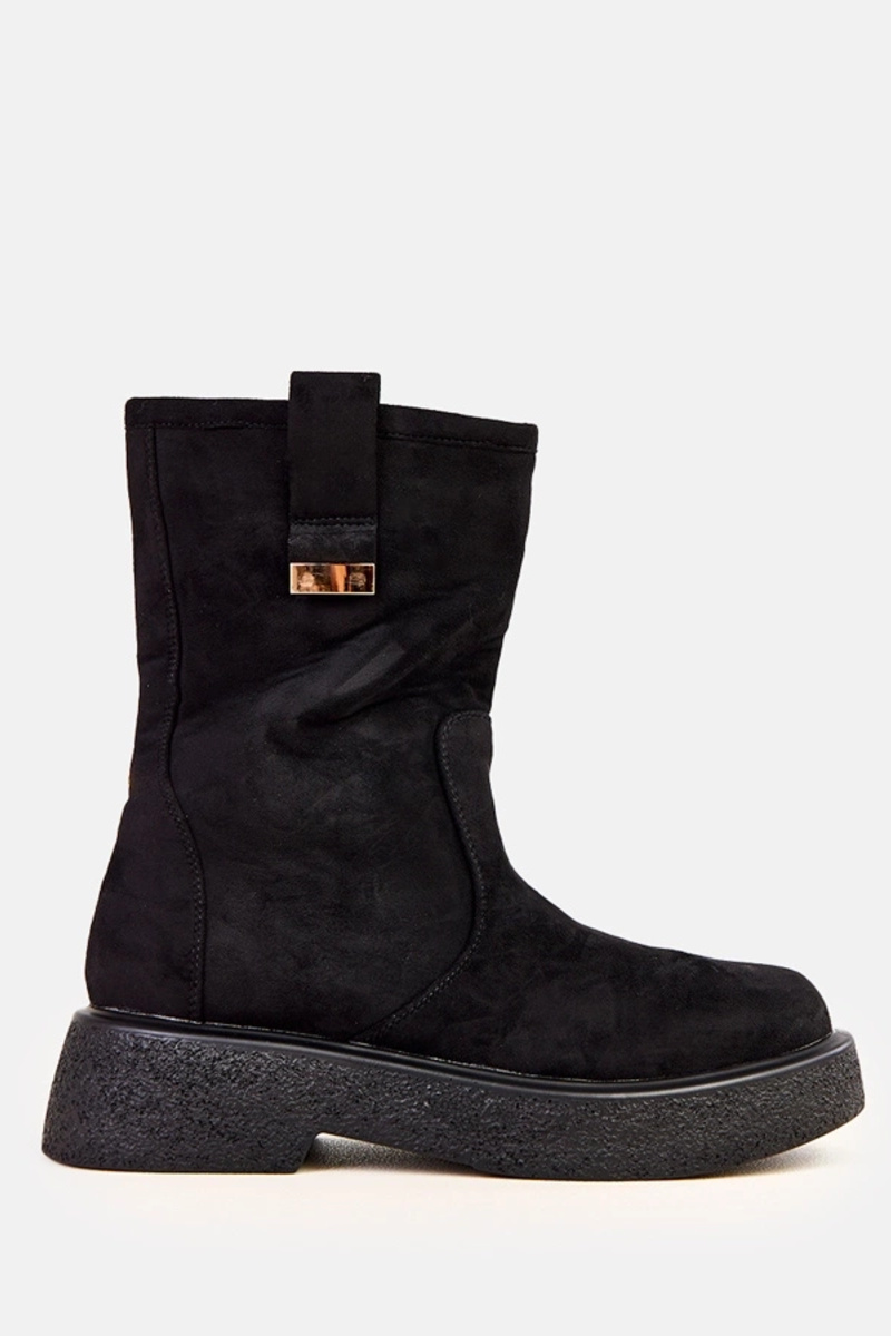 Schwarze Stiefeletten aus Kunstwildleder mit goldener Verzierung Mileda