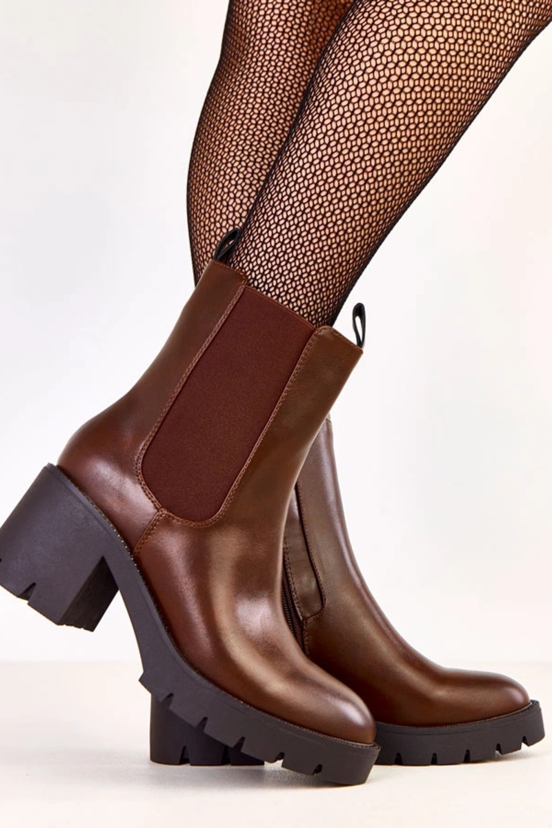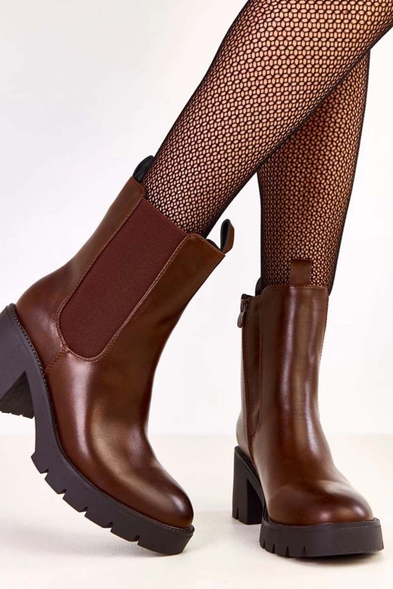 Braune Stiefeletten auf Absatz mit elastischem Einsatz und Zirkonia Meloris