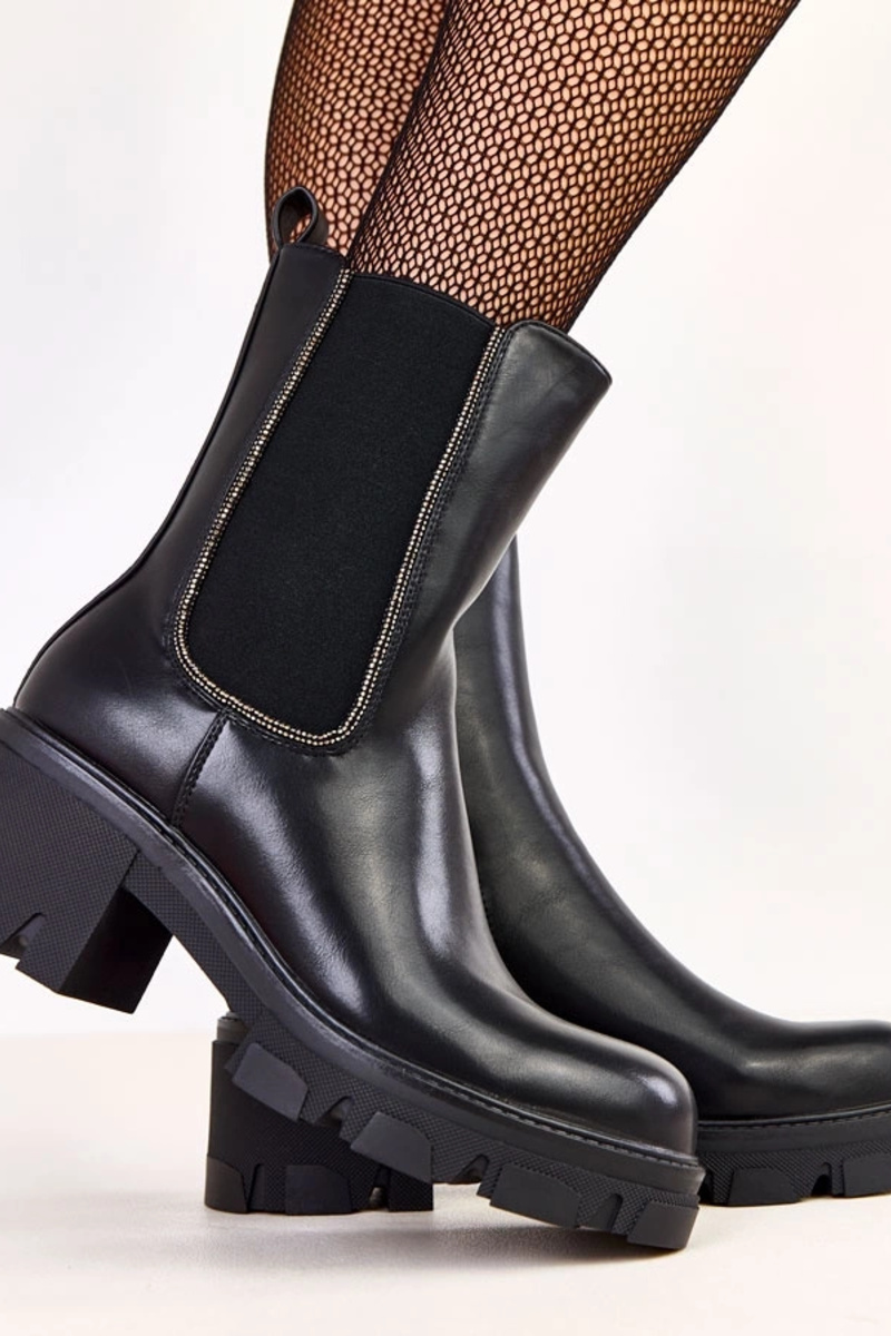 Schwarze Stiefeletten mit elastischem Einsatz und Zirkonia Rimina