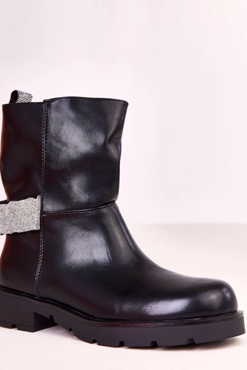 Czarne botki damskie z cyrkoniową ozdobą Elisana