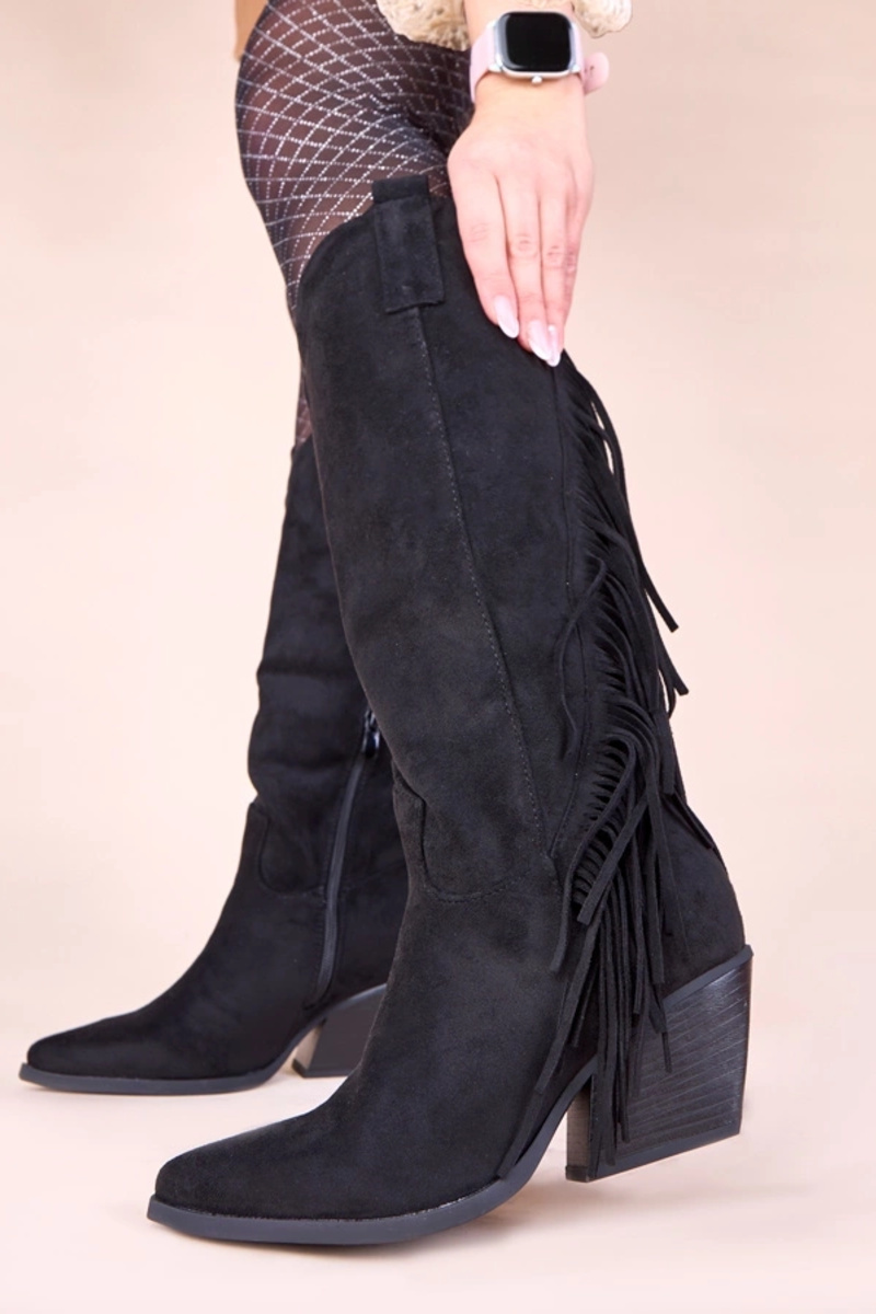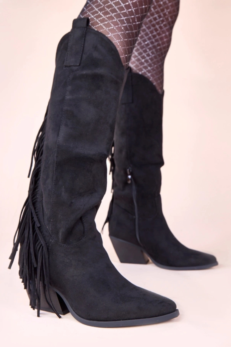 Schwarze Cowboy-Stiefel mit Fransen Misa