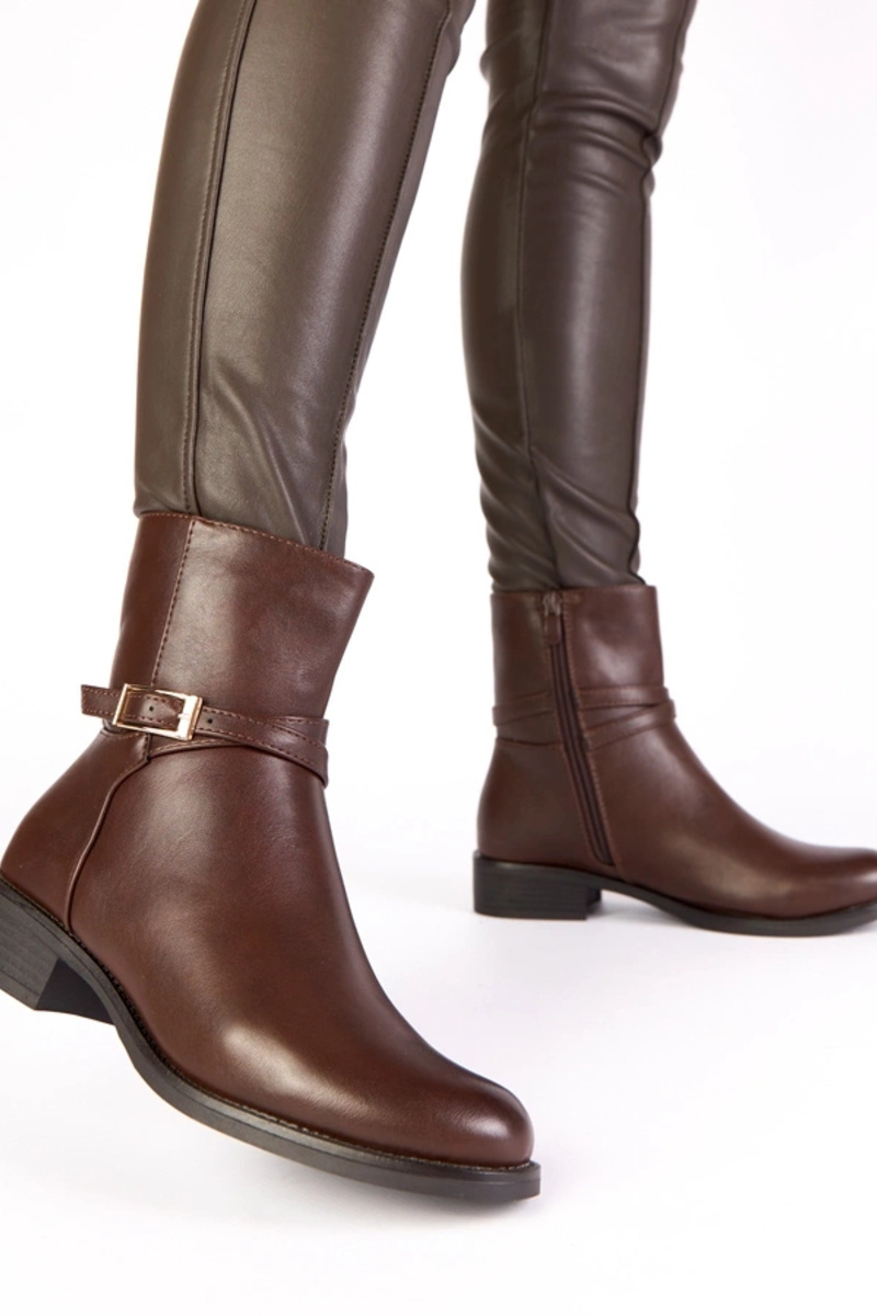 Braune Stiefeletten mit Schnalle und Schloss Zema