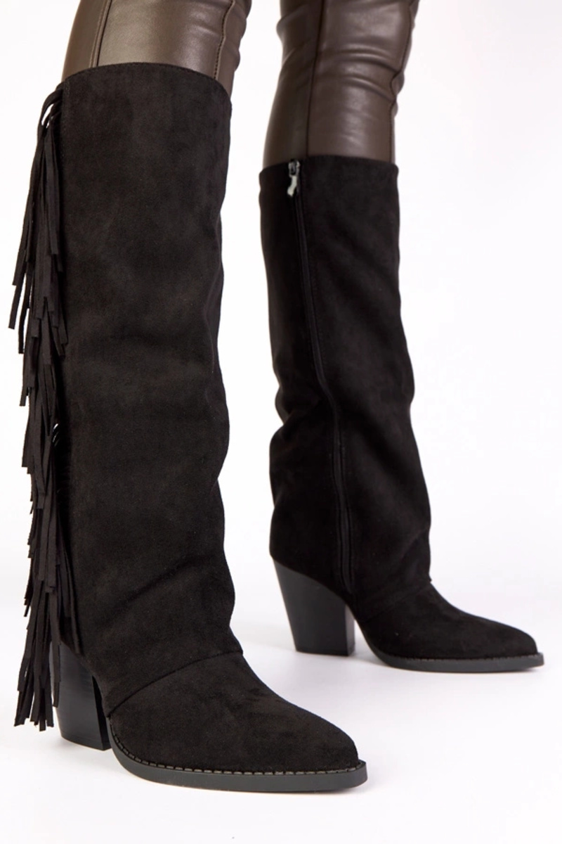 Schwarze Cowboy-Stiefel mit Fransen Shia