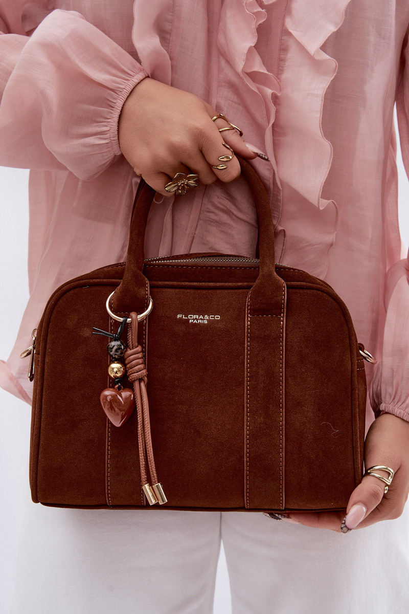 Reisetasche aus Kunstvelours mit Anhängern in brauner Farbe Sorielle