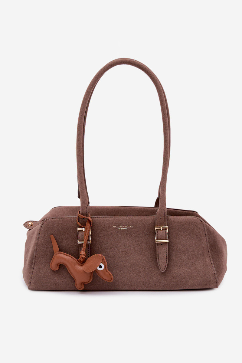 Handtasche aus Kunstvelours mit Anhänger in dunkelbeige Noely
