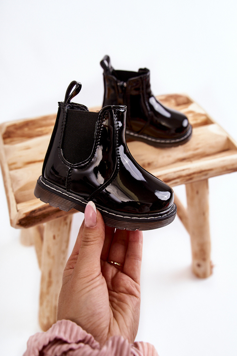 Gewärmte Kinderstiefel mit Lackeffekt, schwarze Farbe Porky