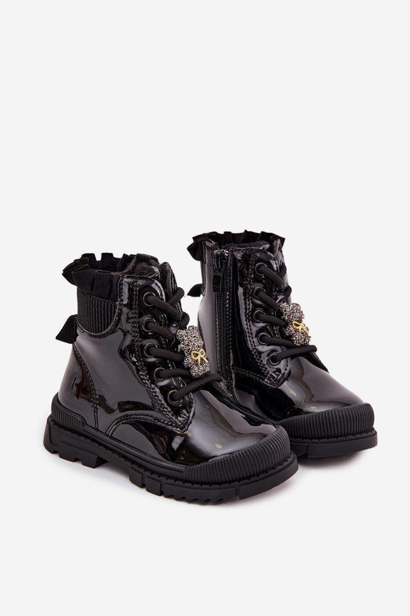 mit Lackeffekt Stiefel Kindisch sich Zuarm laufenPrzypinką Teddybären schZuarze Farbe Fionessa