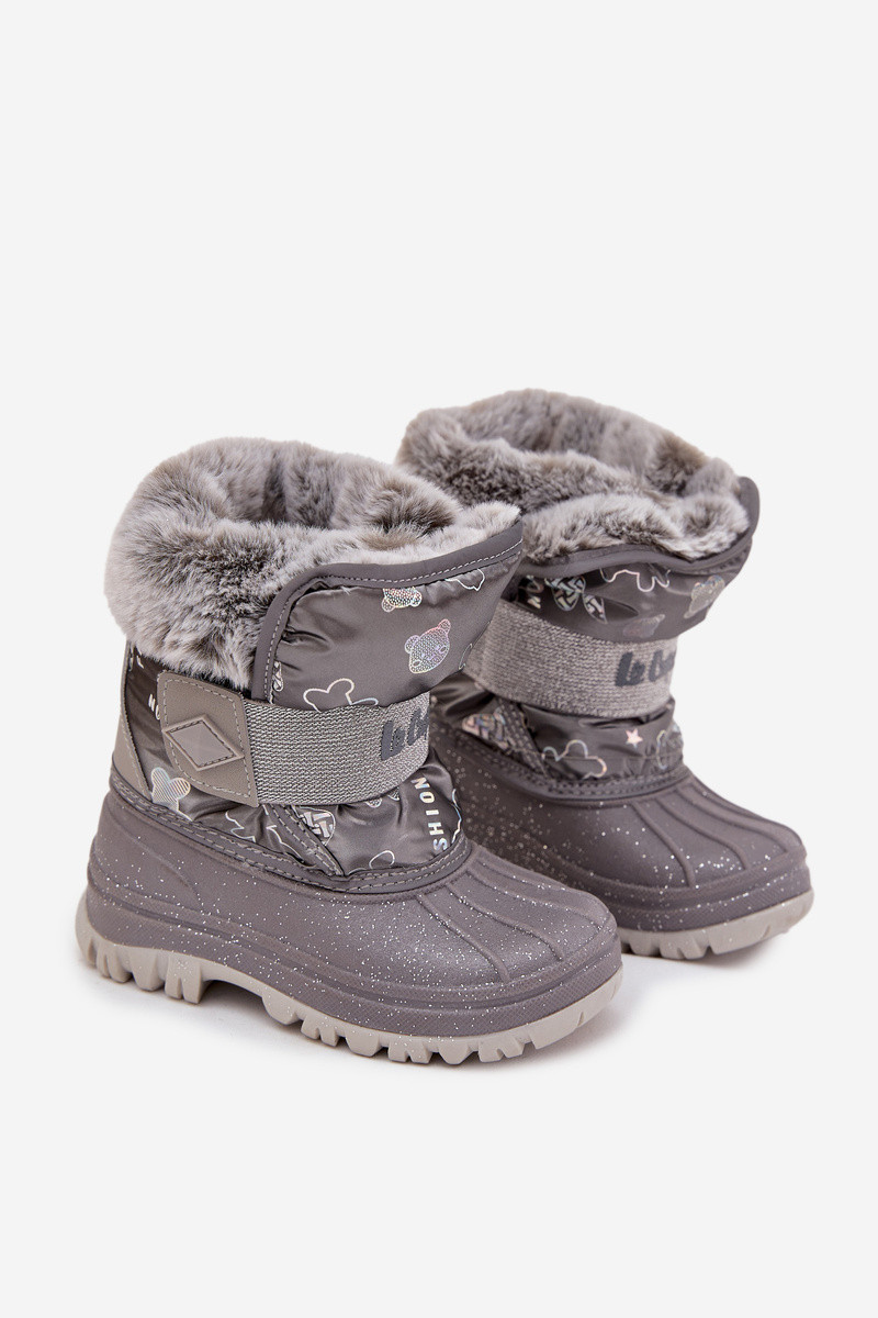 Kinder Lee Cooper LCJ-25-10-3788 graue Schneestiefel mit Fell und Klettverschlüssen
