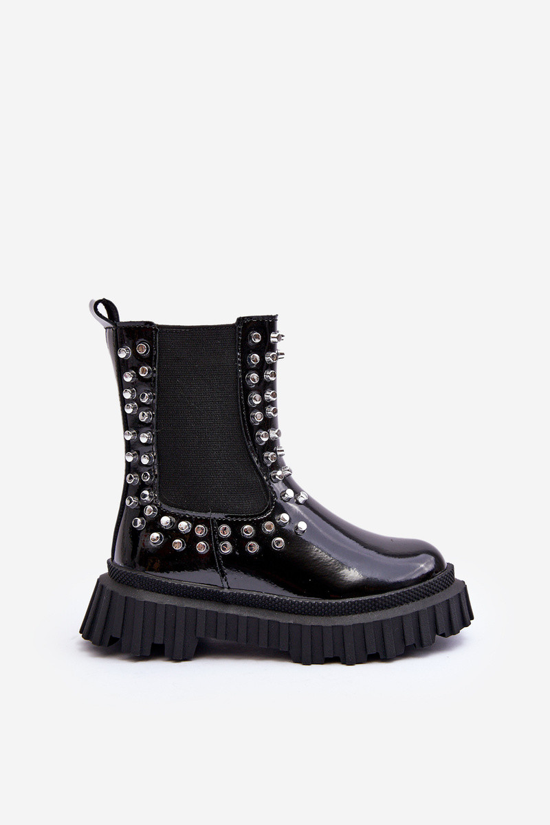mit Lackeffekt stylische Stiefel Kindisch Dekoriert Mit Strasssteinen schZuarze Farbe Adelie
