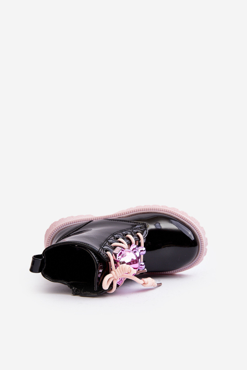 Kinderstiefel Bunnyjoy gefüttert mit Lackeffekt und Ornamenten in Schwarz und Rosa